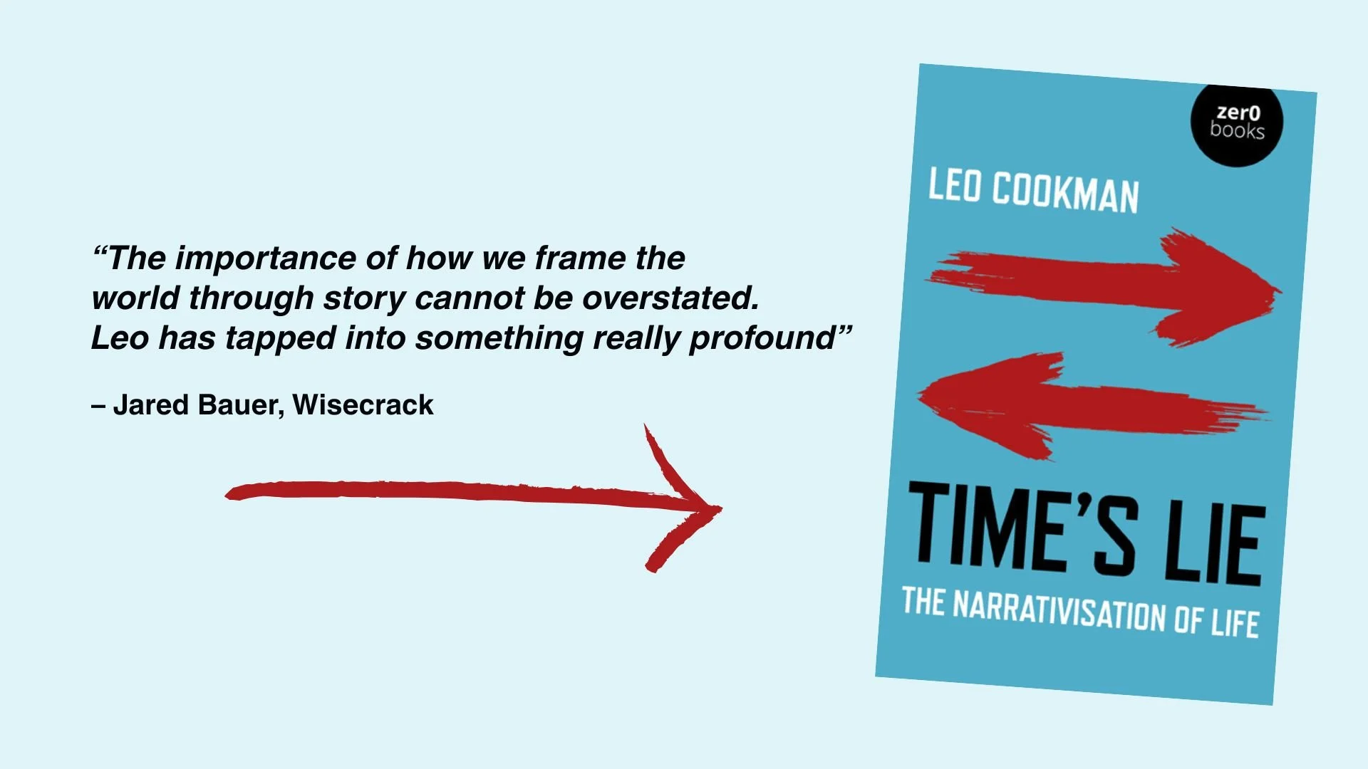 Book cover of 'Time's Lie: The Narrativisation of Life' by Leo Cookman, with red arrow illustrations on a blue background.